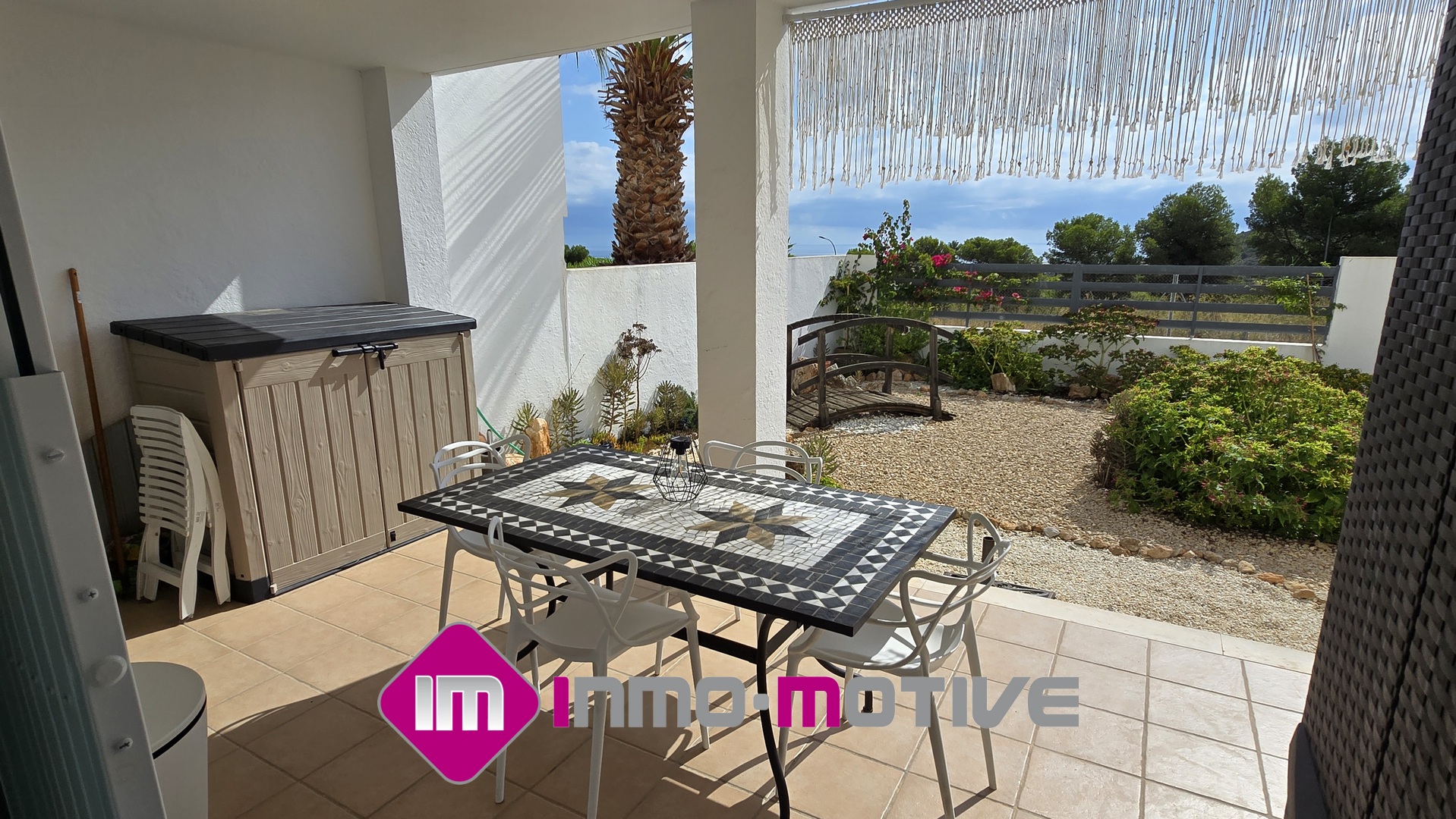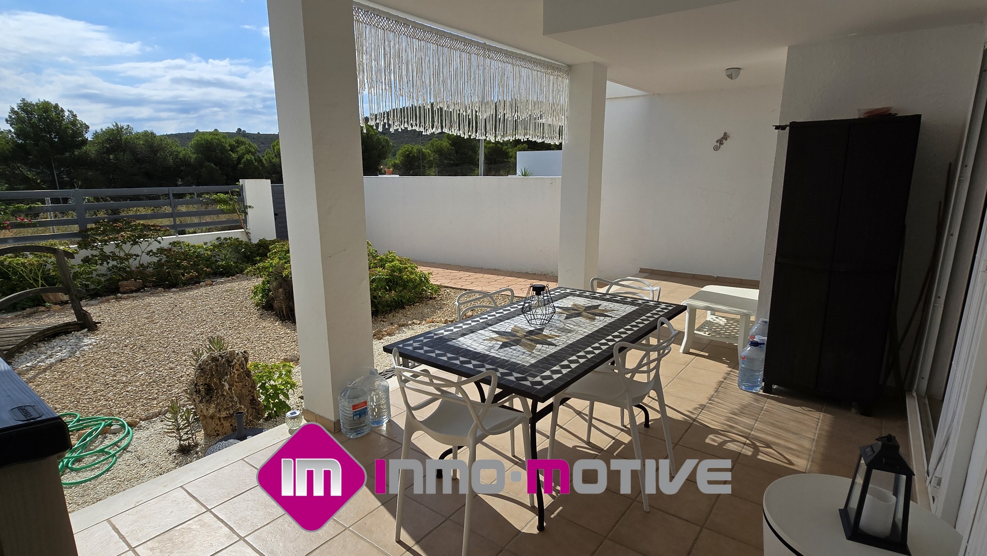 En la zona exterior, encontrarás una agradable terraza cubierta y un jardín privado, perfectos para relajarte, organizar comidas al aire libre o simplemente disfrutar del clima mediterráneo con total privacidad.